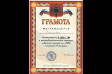 Поздравляем Спичкину Софью занявшую 1 место в квалификационном турнире "Зимние каникулы" - 2014 с нормой IV разряда.