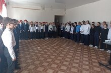 На линейке присутствовали учащиеся 7а и 7б классов, а также активисты отрядов "Факел" и "Юнармия". -
