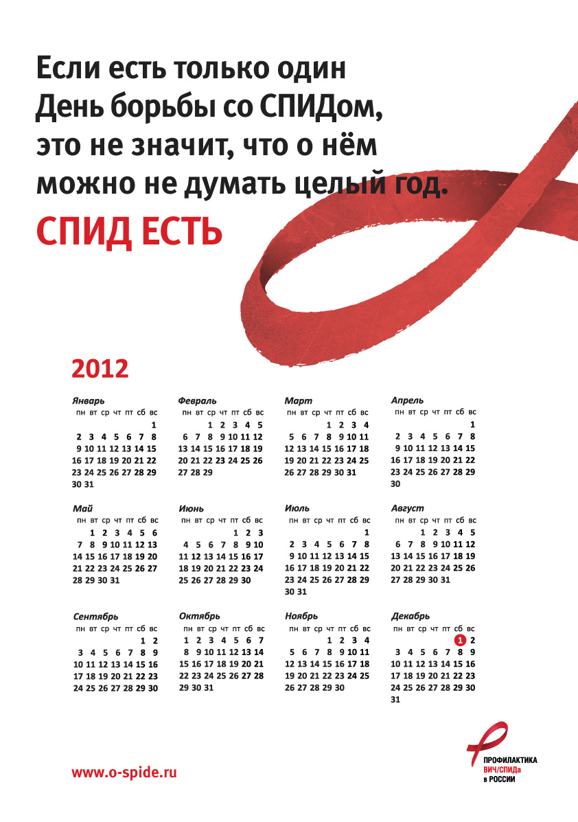 Макет календаря "Профилактика ВИЧ/СПИДа в России"