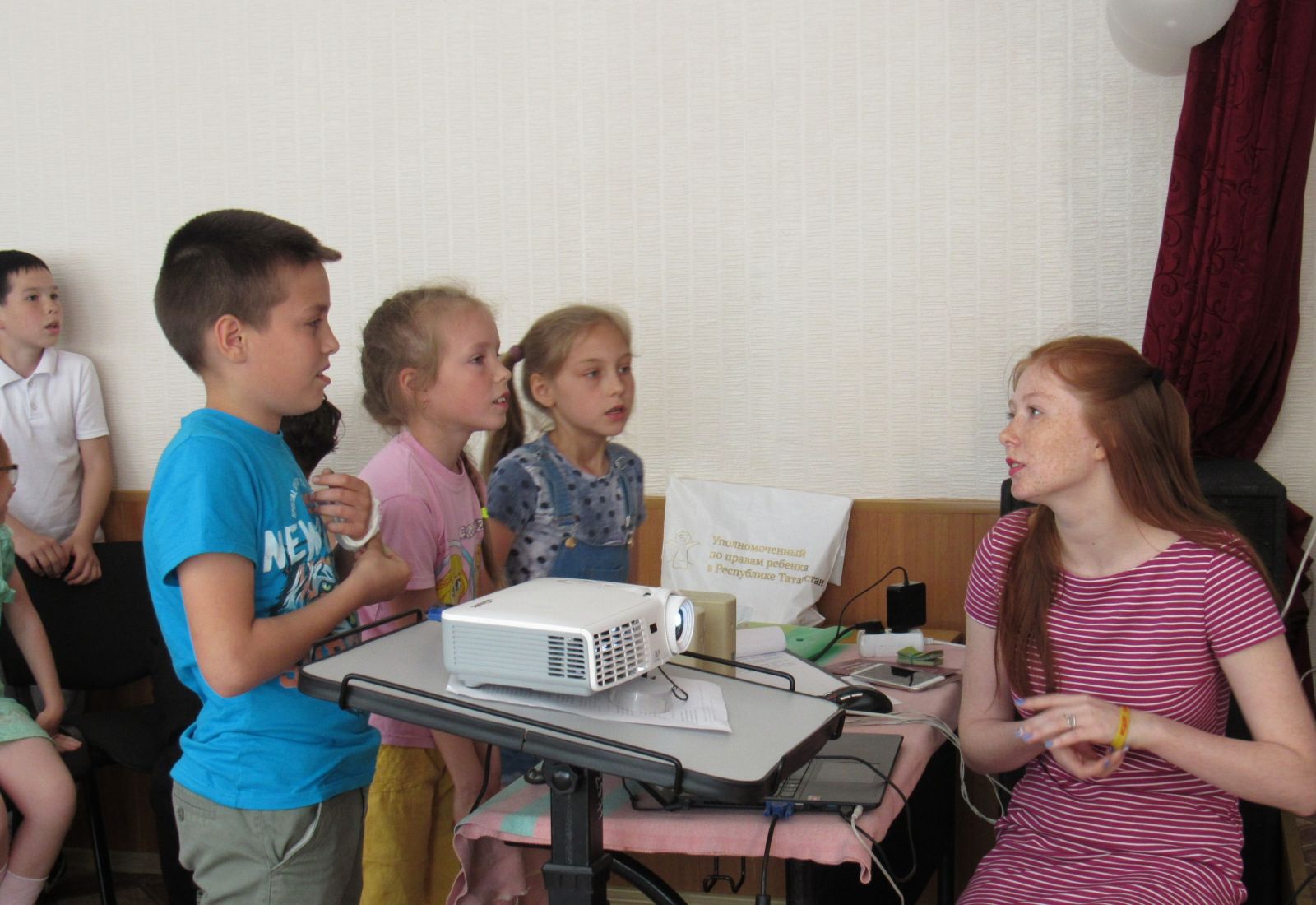 Во второй половине дня состоялась встреча с общественным помощником уполномоченного по правам ребёнка в республике Татарстан Анжелой Ахметшиной. Она провела беседу с детьми об их правах и обязанностях, провела разбор ситуаций и опрос в форме игры, рассказала, как себя вести в интернете.