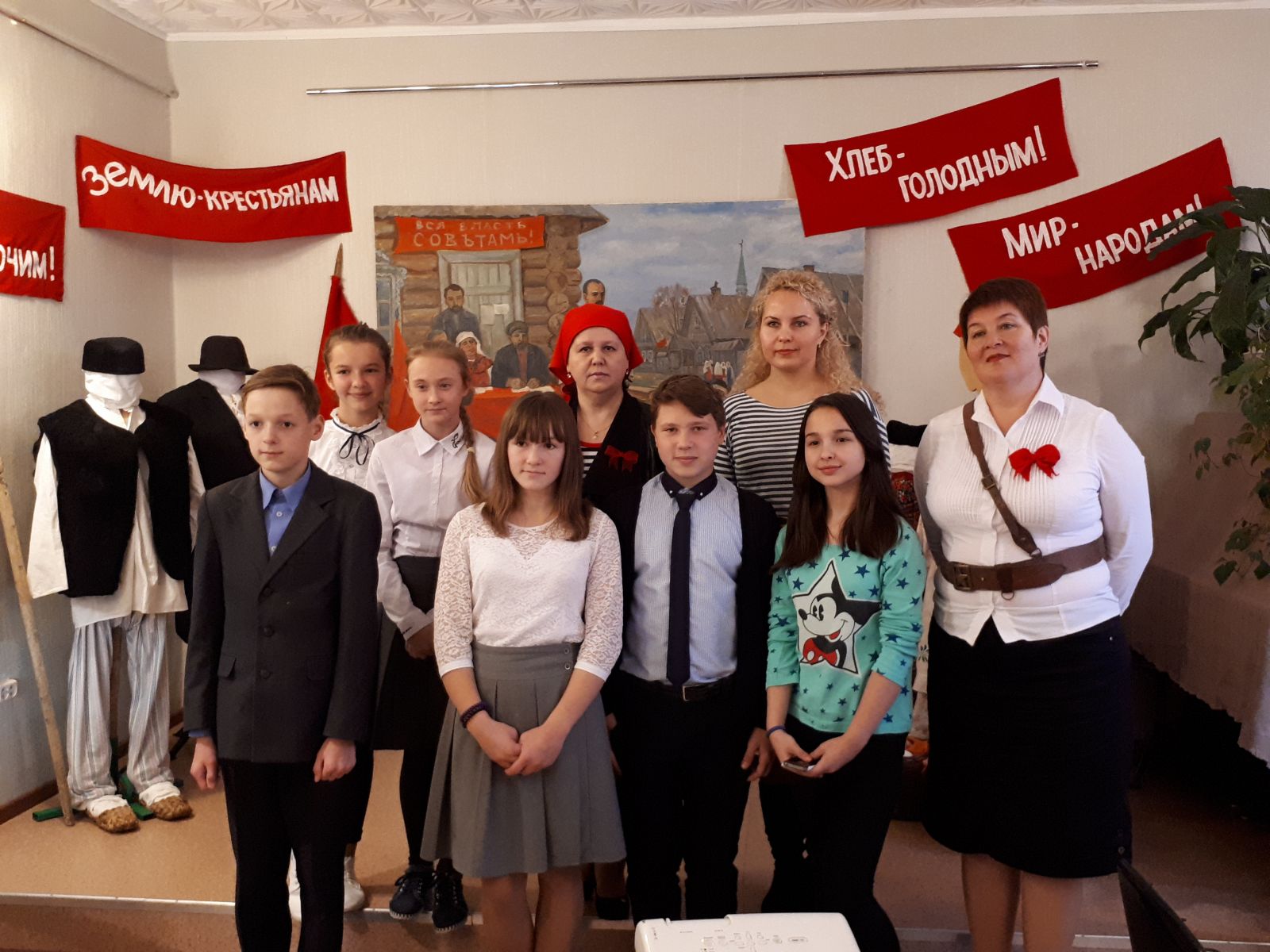 Учащиеся юнармейцы 7 б класса посетили выставку- открытие. Уже на входе посетителей встречал революционный матрос, принимая входные мандаты. Ребята активно включились в «Мозговой революционный штурм», разбирались в словах, ставших анахронизмами, сочиняли стихи в стиле В. Маяковского. Познавательно было знакомство с архивными документами из фондов Лениногорского краеведческого музея. В ходе мероприятия стало понятно, как много незнакомо нынешней молодежи из того, что когда-то было историей Советской страны. Встреча с революционным прошлым прошла увлекательно и информативно.