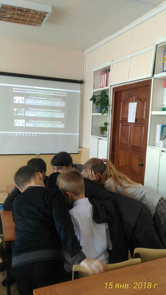 Опубликовано: 15.01.201815 января в рамках недели классных руководителей "Профилактика правонарушений" в 5 в классе был проведен классный час по теме "Поступок или проступок?", в ходе которого обучающиеся ответили на перечень вопросов по теме мероприятия, посмотрели видеофрагмент, в группах разобрали различные ситуации.