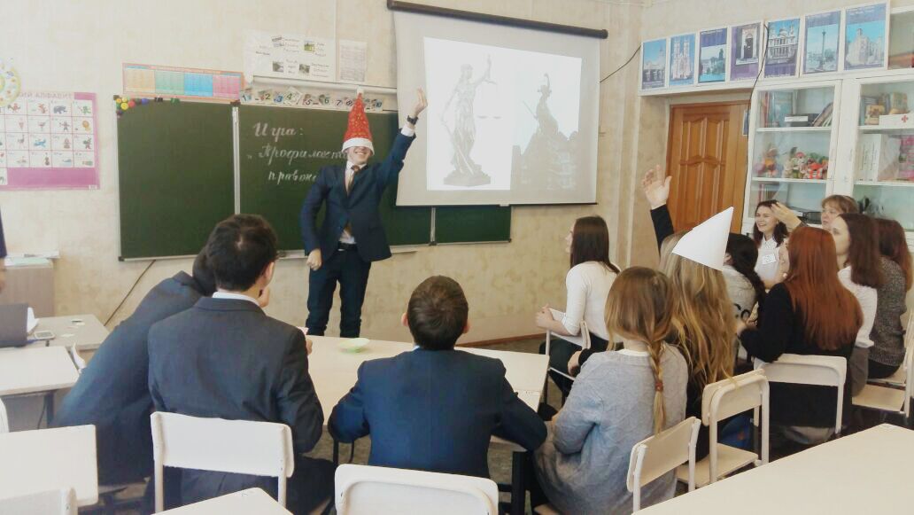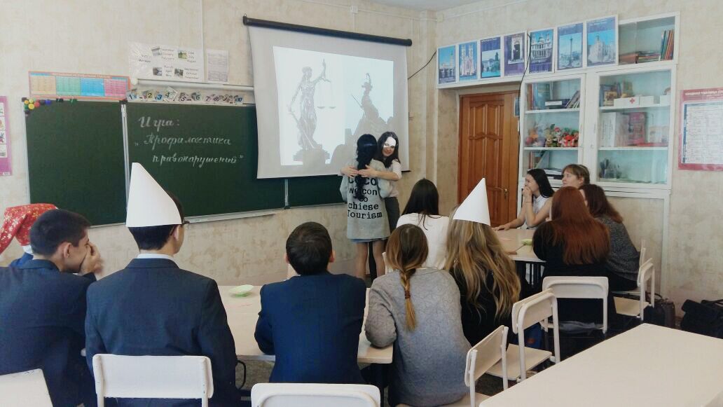 В рамках проведения недели классных руководителей 17 января был проведено внеклассное мероприятие –игра "Профилактика правонарушений». Самые безрассудные поступки свойственны молодости. Именно в раннем возрасте сам человек нередко протаптывает тропинку к высокому забору с орнаментом из колючей проволоки. «Не знал…», «Не думал…», «Не хотел... », – этот лепет часто приходится слышать. Приблизительно каждый пятый преступник – несовершеннолетний. Это сотни подростков каждый год. Целью игры было вспомнить известные учащимся понятия изученных тем, статьи Конституции РФ способствовать воспитанию чувства гражданственности, сопричастности к истории страны.