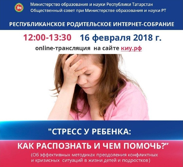 16 февраля 2018 года с 12.00 до 13.30 состоится Республиканское родительское интернет-собрание на тему: «Стресс у ребенка: как распознать и чем помочь?».