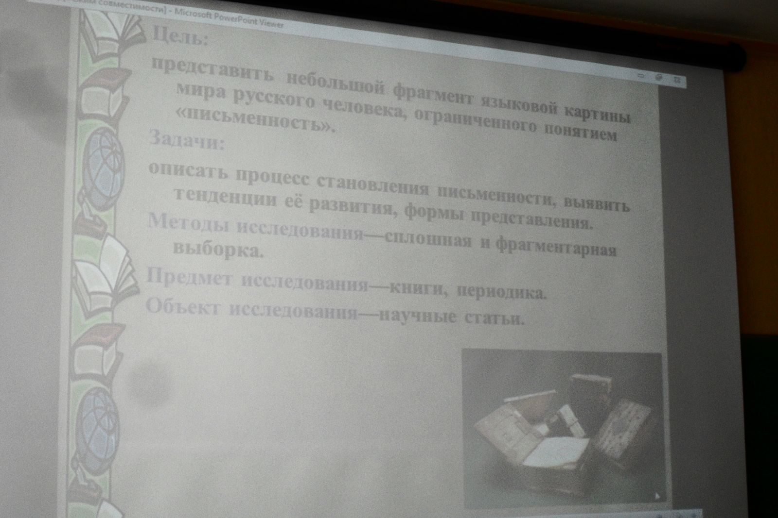 Значение письменности. В начале XXI столетия немыслимо представить современную жизнь без книг, газет, указателей, потока информации, а прошлое - без упорядоченной истории, религию - без священных текстов... Появление письменности стало одним из самых важных открытий на долгом пути человечества. По значимости этот шаг можно, пожалуй, сравнить с добыванием огня или с переходом к выращиванию растений вместо долгой поры собирательства. Становление письменности - очень непростой процесс, длившийся тысячелетия. Славянская письменность, наследницей которой является наше современное письмо, встала в этот ряд уже более тысячи лет назад, в IX веке нашей эры.