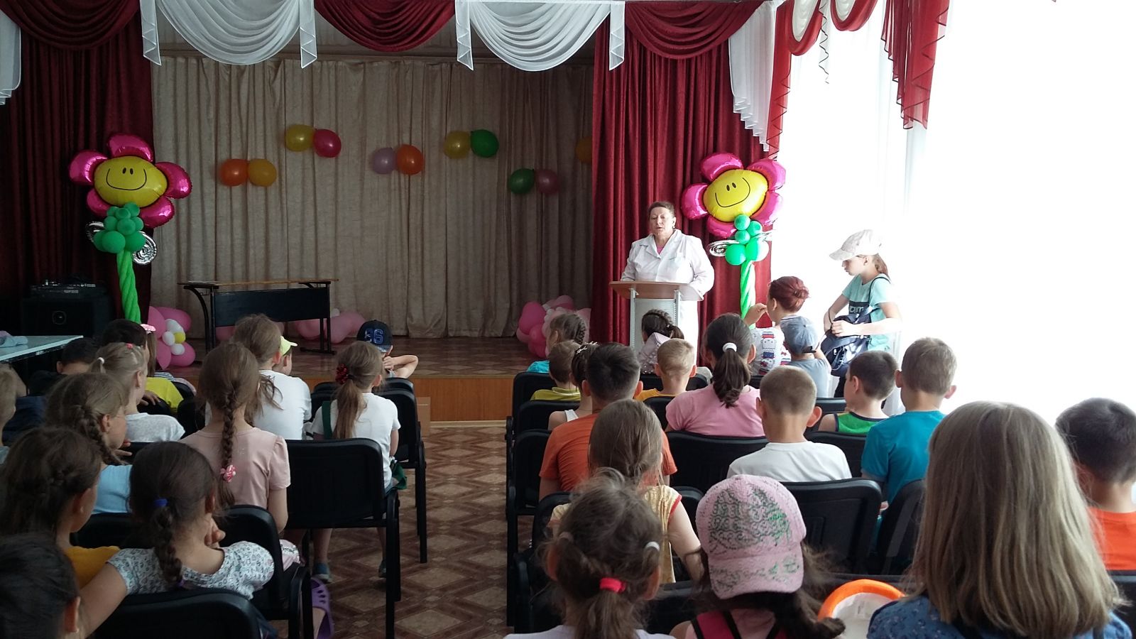 Сегодня 27 июня утро в лагере началось с минутки здоровья «Берегите глаза», которую провела школьная медсестра Фомина Г.В.