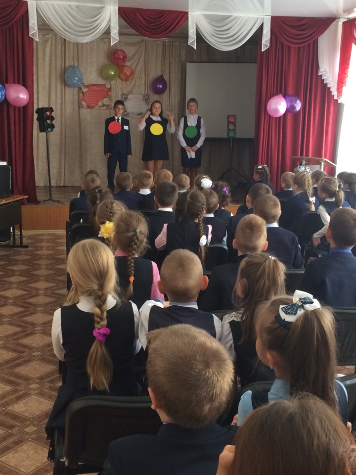 10 сентября проходило посвящение первоклассников в юные пешеходы. Главной задачей данного мероприятия было сформировать твердые навыки безопасного поведения на улицах и дорогах, обобщить знания по правилам дорожного движения, научить их ориентироваться на дорогах в любых ситуациях. На сцене юные инспектора движения, действующие в школе, рассказали им про светофор, его значение на дорогах, основные сигналы, спели песенку про правила дорожного движения. В конце мероприятия ведущие вместе с детьми разгадывали загадки, закрепляли усвоенные знания. Все первоклассники получили фликеры и приклеили их на свои портфели.
