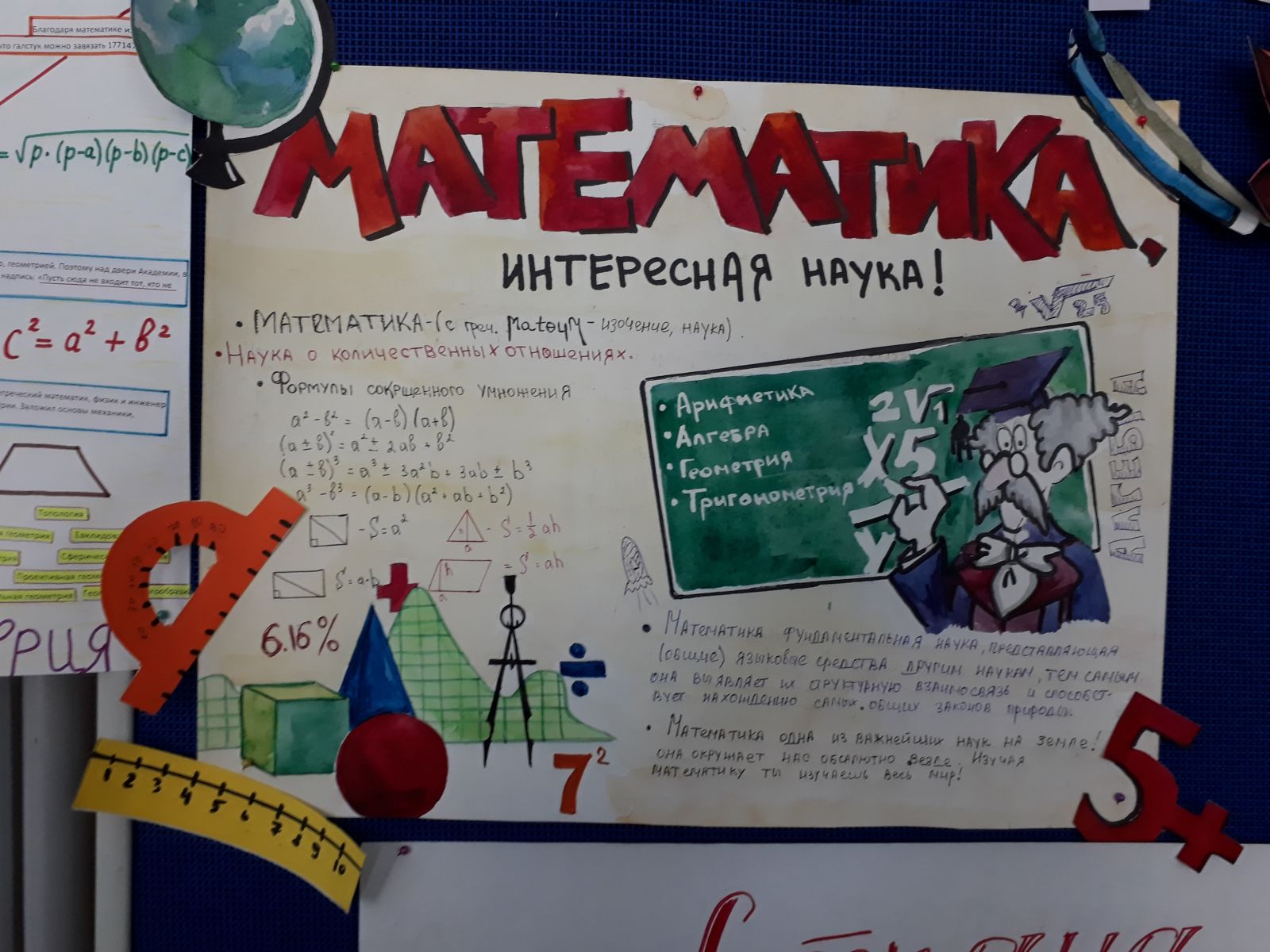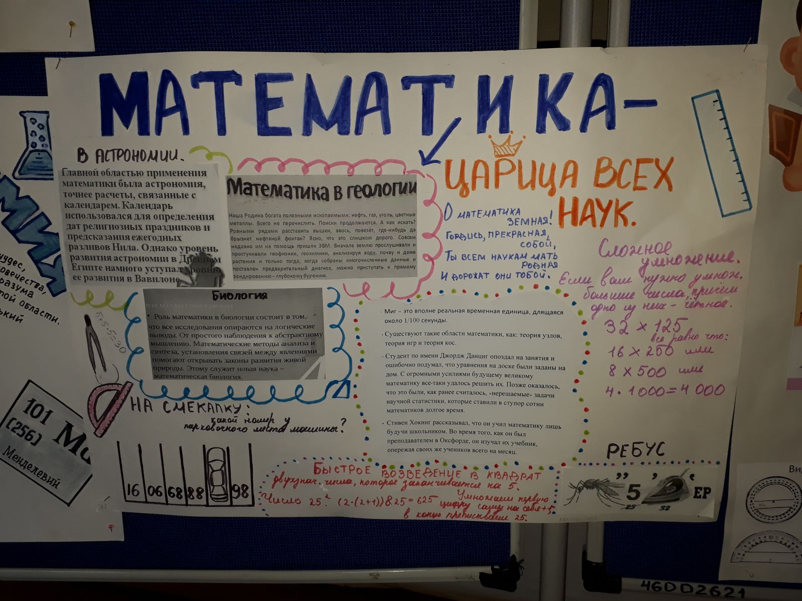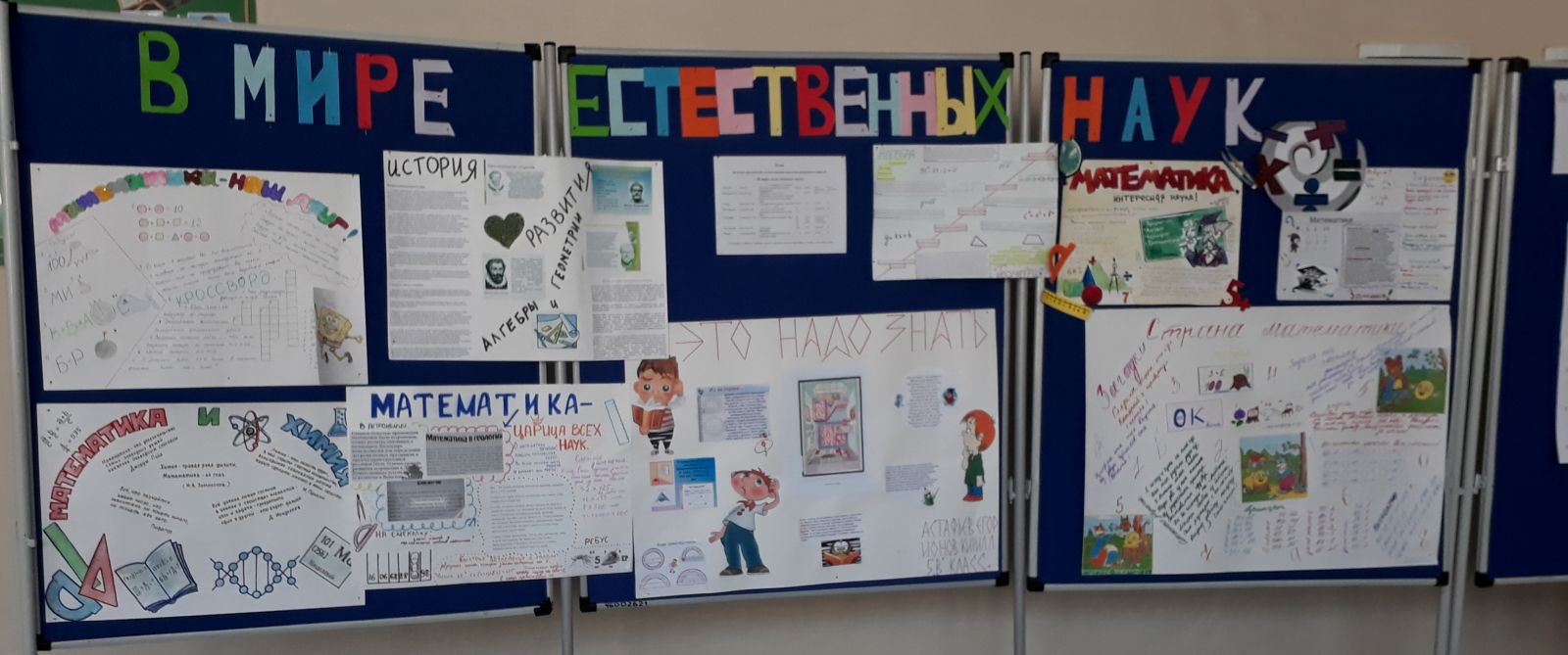 Неделя естестевенно-математических наук началась с выставки газет по математике, которую подготовили учащиеся (5В, 8А, 8Б) (учитель математики Антипова Л.П.) Ребята в своих работах всесторонне раскрыли роль математики в жизни.