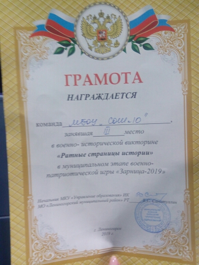 муниципальное бюджетное общеобразовательное учреждение «Средняя общеобразовательная школа №10 г. Лениногорска» муниципального образования "Лениногорский муниципальный район" Республики Татарстан