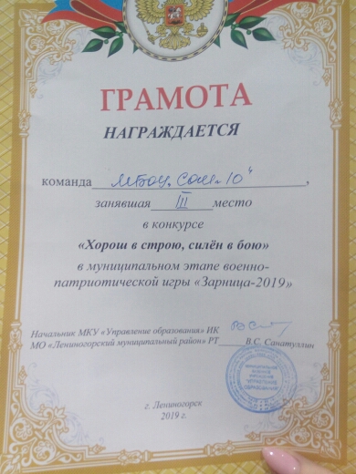 Опубликовано: 21.03.201921 марта в спорткомплексе ,,Юность"был проведен муниципальный этап военно-патриотической игры "ЗАРНИЦА". Нашу школу представлял отряд ,,Звезда"(руководитель Димиева Э.А.).Ребята(учащиеся 7б,8а,8б классов) активно участвовали на всех этапах игры.Конкурсная программа включала военно-историческую викторину,стрельбу , силовую подготовку,снаряжение магазина, разборку и сборку АК-74 ,смотр строя и песни.Наша команда с достоинством выполнила все задания.МОЛОДЦЫ!