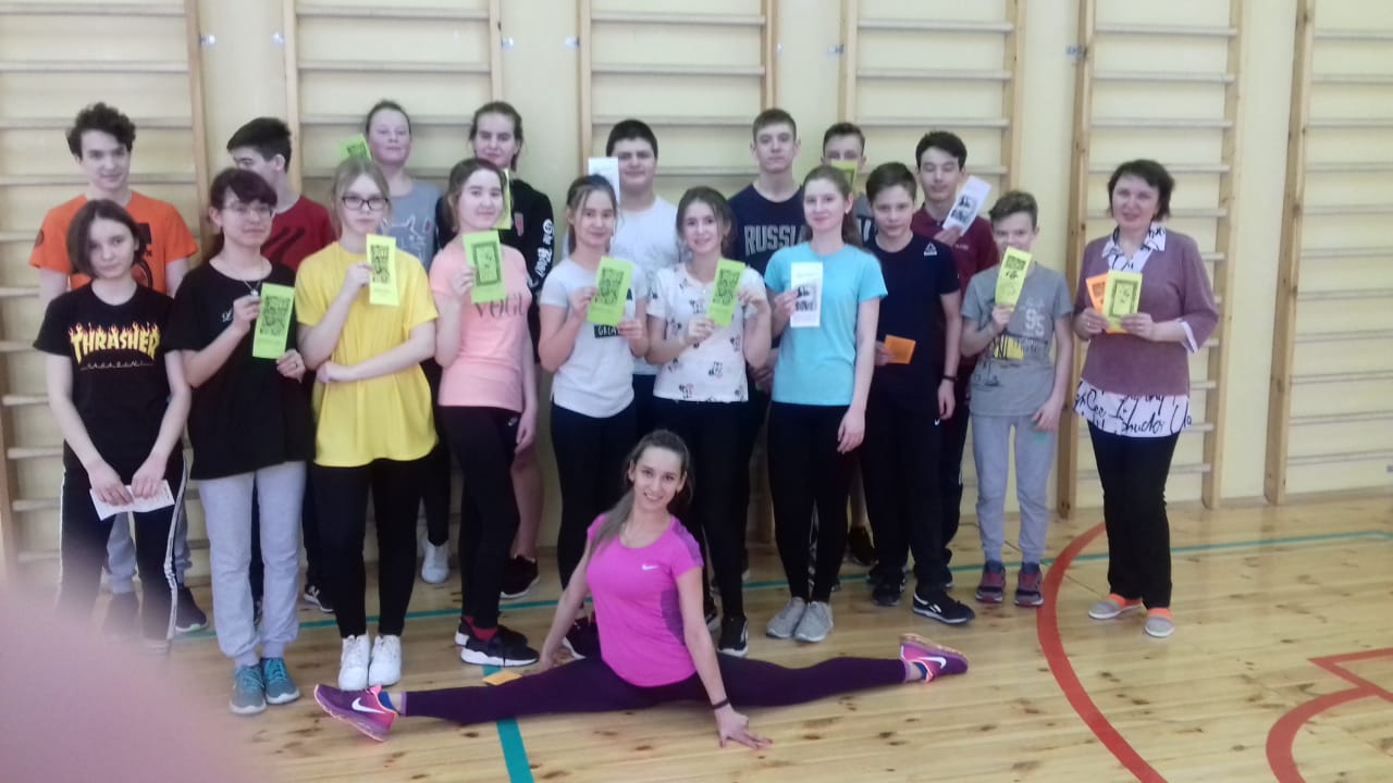 3 апреля на кануне Всемирного дня здоровья работниками ЦБ и фитнес-тренером Мустафиной Лейсан Минасгитовной был проведен флеш-моб "Жизнь! Здоровье! Красота" с учащимися 8 класса . С библиотекарем ребята вспомнили определение слова здоровья, выяснили, что включает в себя ЗОЖ. вспомнили о правильном питание, о вредных для здоровья продуктах, о соблюдении режима дня, о пользе физических занятий, о вреде вредных привычек, компьютера и телевизора.