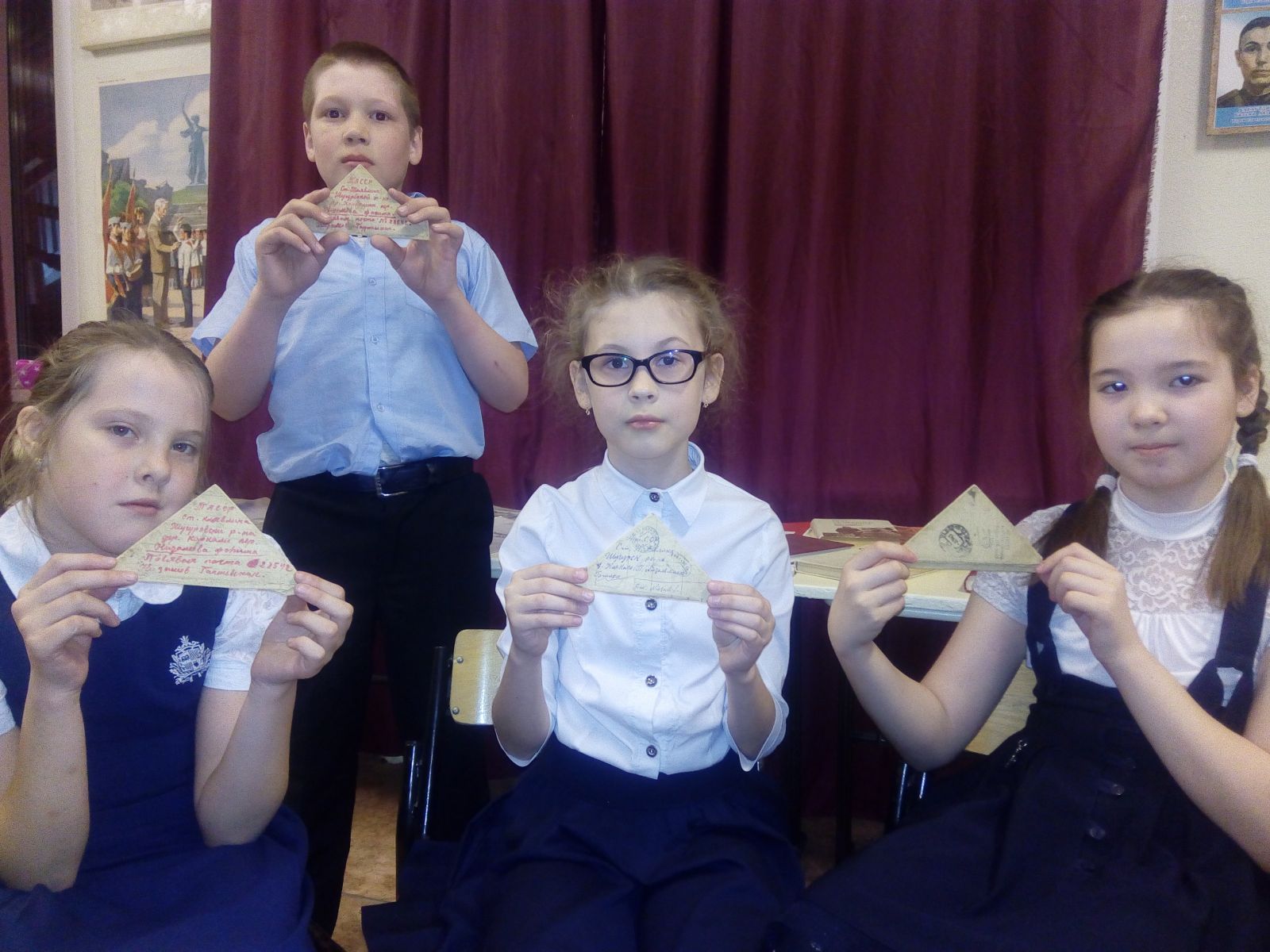 Опубликовано: 19.04.2019В Татарстане стартовал республиканский проект «Шаги Победы-2019». Учащиеся 3А класса нашей школы под руководством рук.школьного музея Димиевой Э.А. приняли активное участие и в рамках данного проекта провели акцию ,,Письма Победы". Акция проходила в школьном музее.Мы считаем,что каждый человек должен задуматься о своем личном вкладе в дело сохранения исторической памяти, обратились «в прошлое», членам своих семей, участникам боевых действий.