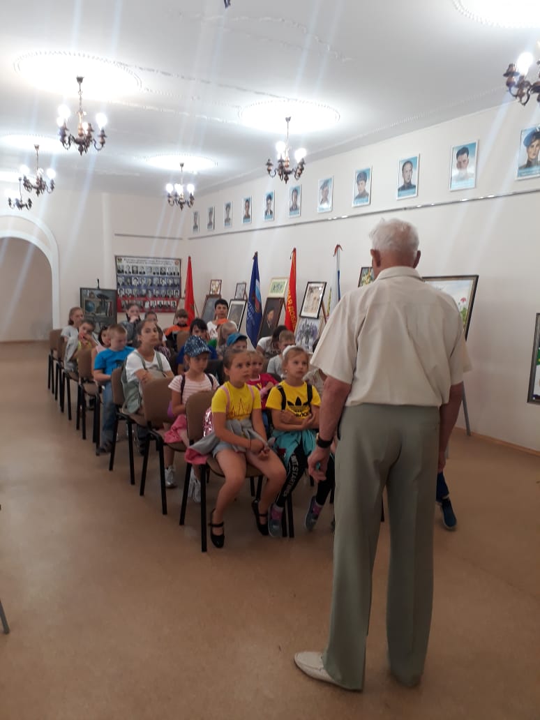 После завтрака 3 отряд отправился в краеведческий музей, где проводилось мероприятие ««Защищая Отечество». Далее 1и 2 отряды посетили Совет ветеранов. Почетный гражданин города, Степанов Николай Николаевич, рассказывал детям о Героях Советского Союза.
