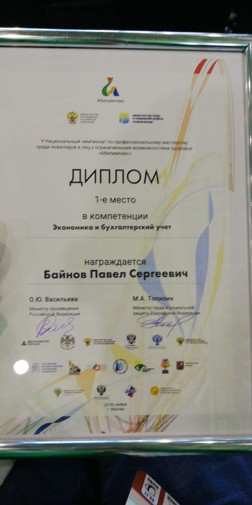 Байнов Павел, учащийся 10а класса, занял первое место в компетенции «Экономика и бухгалтерский учёт».