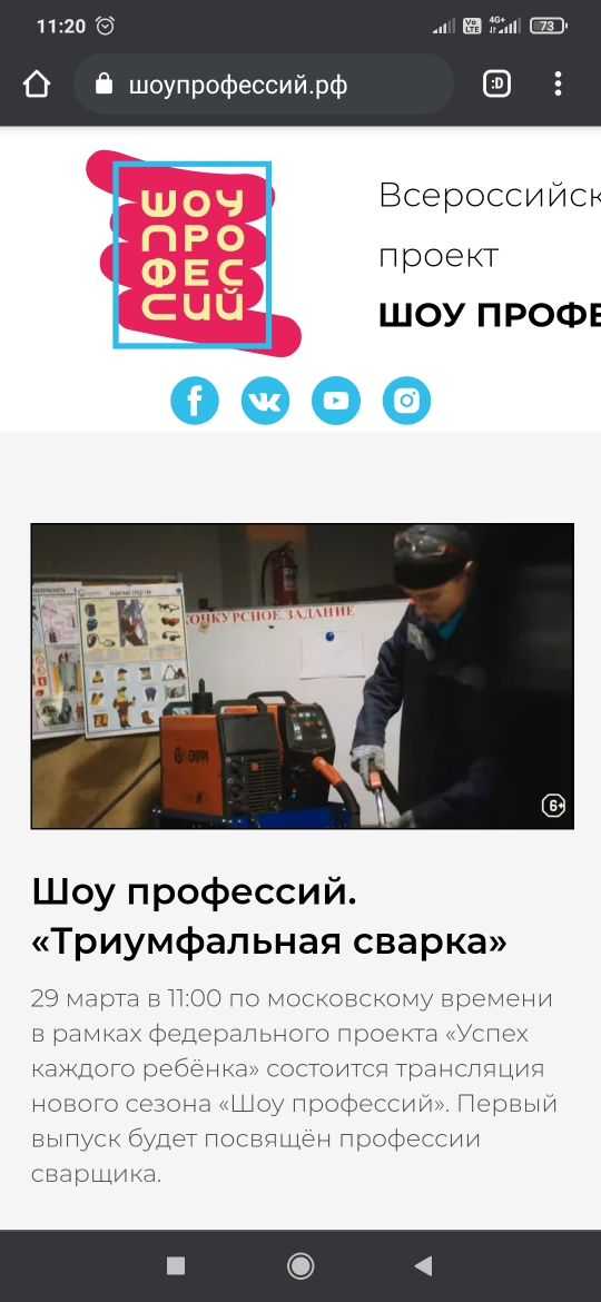 Опубликовано: 29.03.202129 марта в рамках федерального проекта «Успех каждого ребёнка» учащиеся посетили трансляцию нового сезона «Шоу профессий». Выпуск бул посвящён профессии сварщика.