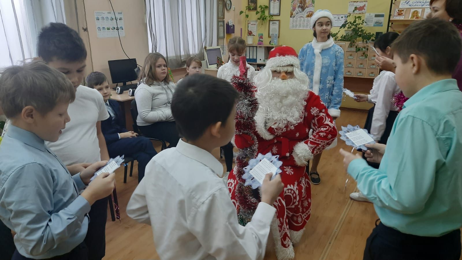 Сегодня в рамках внеурочных занятий «Разговоры о важном» прошли уроки на тему «Новый год. Семейные праздники и мечты». Ребята прослушали новогоднее обращение Министра просвещения С.С. Кравцова к школьникам страны, выполнили интерактивные задания, рассказали о семейных традициях празднования Нового года и поделились своими пожеланиями.