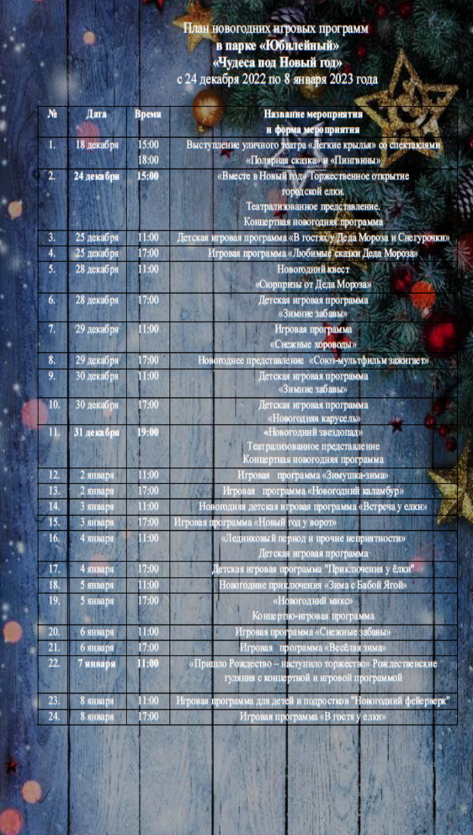 План новогодних игровых программ