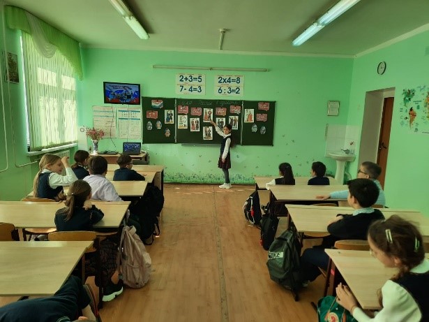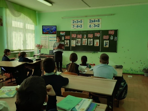 1.В 4 классе было проведено внеклассное мероприятие «Сила России в единстве». Классный руководитель и учитель начальных классов Аблиева В.М. рассказала детям об истории возникновения Древней Руси, о героическом прошлом страны, о подвигах и героизме русского народа, о народностях и национальностях, населяющих Россию. Дети читали стихи о Родине. Классный руководитель провела викторину «Знатоки родного края».