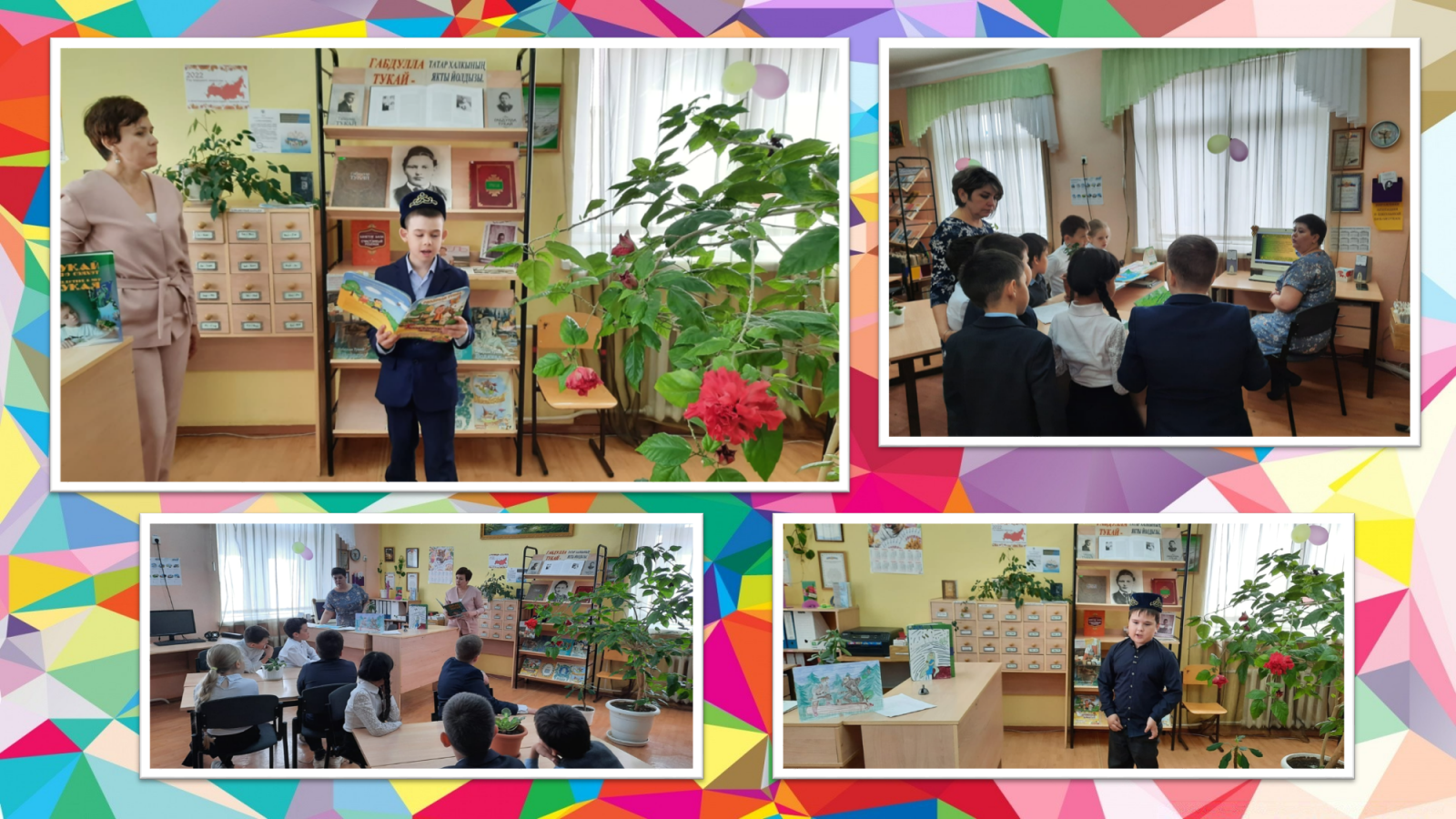 В школьной библиотеке прошёл урок родного (татарского) языка в 3 классе. Урок был приурочен 136летию со Дня рождения великого татарского поэта Г. Тукая. Вильданова Р. Ш. рассказала учащимся о жизни поэта.