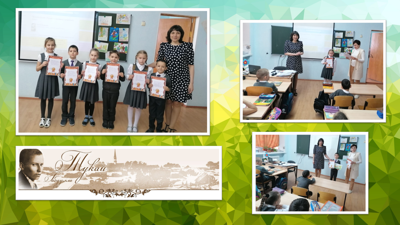 В рамках недели родного(татарского) языка был проведён ряд мероприятий, посвящённых 136-летию со Дня рождения Г. Тукая. Подведя итоги, учащимся 1кл были вручены грамоты за конкурс рисунков, посвящённых творчеству поэта.