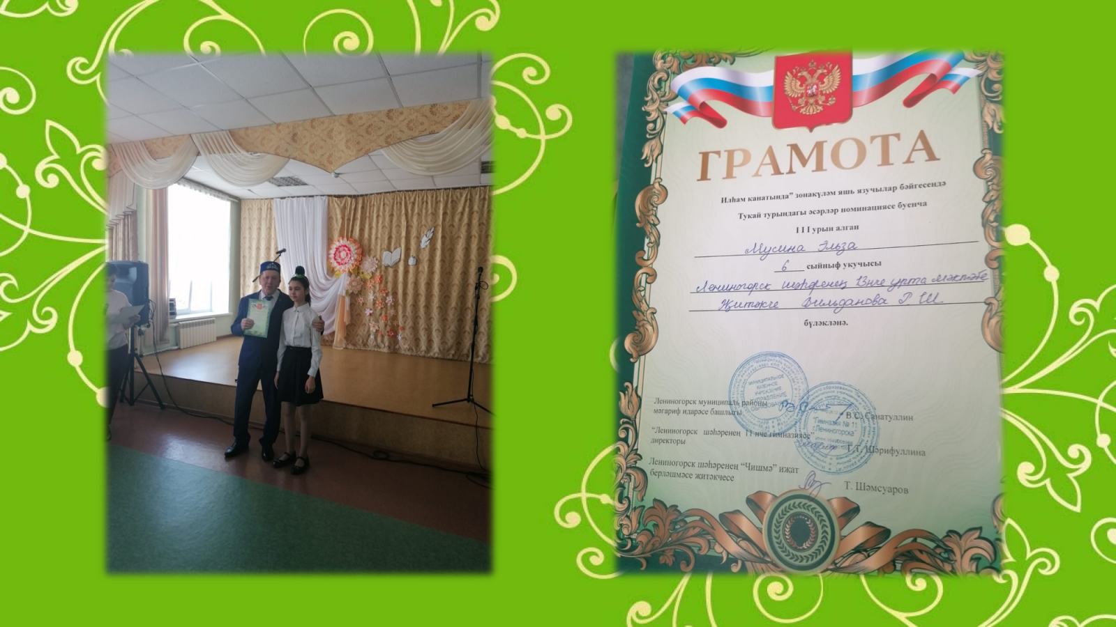 Поздравялем ученицу 6 класса Мусину Эльзу, которая заняла III место в литературном конкурсе на родном языке.