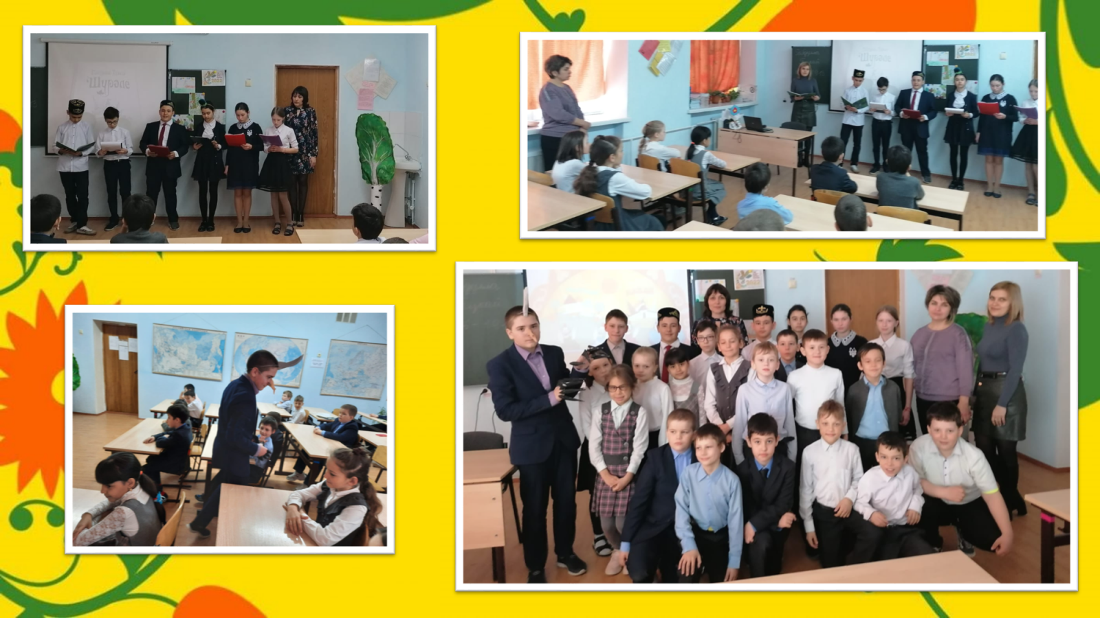 В рамках недели родного(татарского) языка прошёл урок , посвящённый творчеству Г. ТУКАЙ. Учащиеся 6класса читали сказку "Шурале" на трёх языках(татарском, русском, английском). Ответственные учителя:Вильданова Р. Ш. , МиндрахмановаГ. Р., Кузнецова З. М