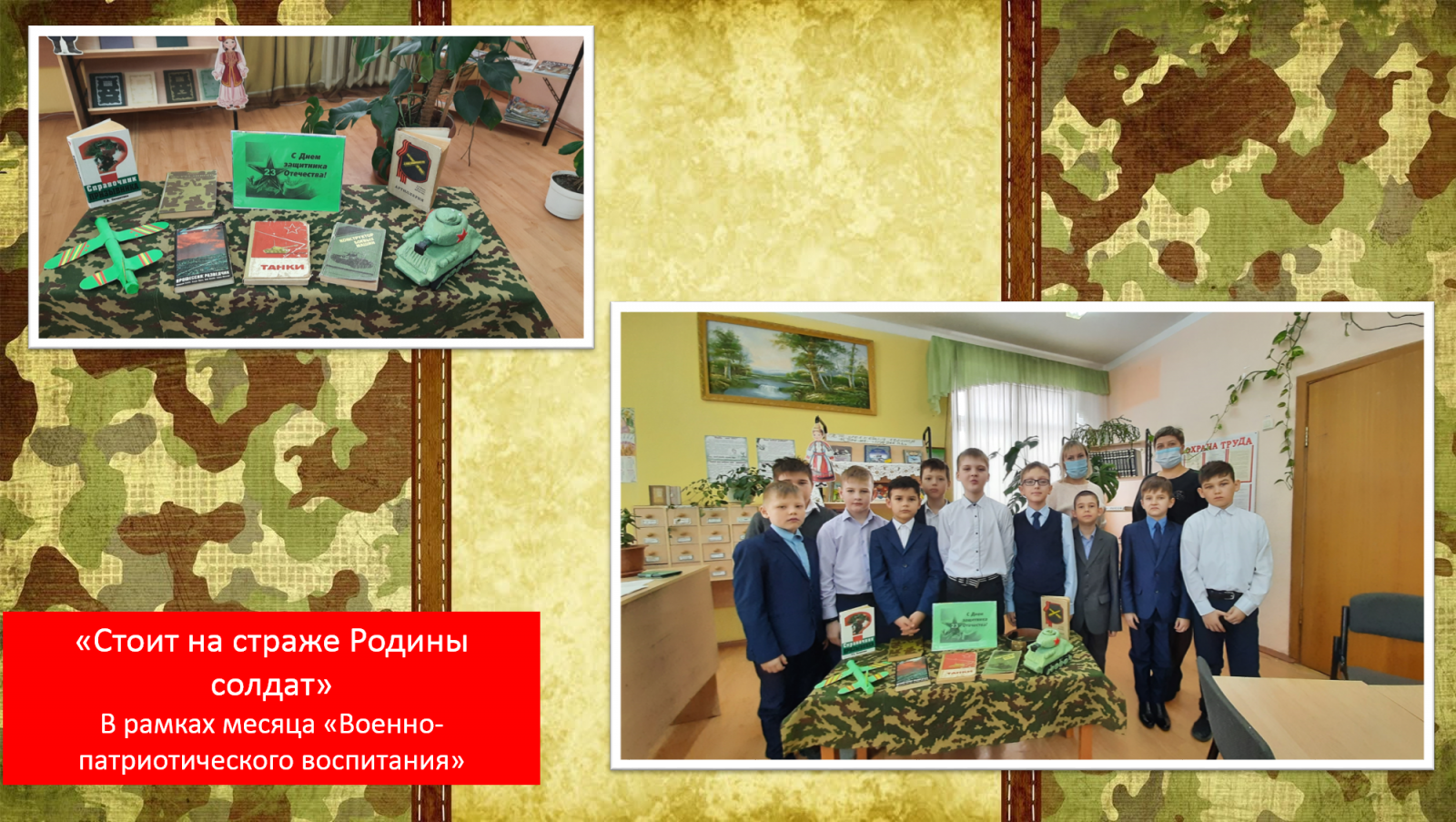 22 февраля 2022г. в школьной библиотеке, совместно с МОО «ТОС №12» с учащимися 3 класса МБОУ «СОШ №13» прошел литературно-познавательный журнал «Стоит на страже Родины солдат». Елена Викторовна познакомила ребят с историей Советской армии. Затем читатели библиотеки приняли участие в «рыцарском турнире». А в конкурсе «Комплимент», юные «Рыцари» говорили приятные слова милым дамам. В конце мероприятия прозвучали поздравления будущим защитникам Отечества.