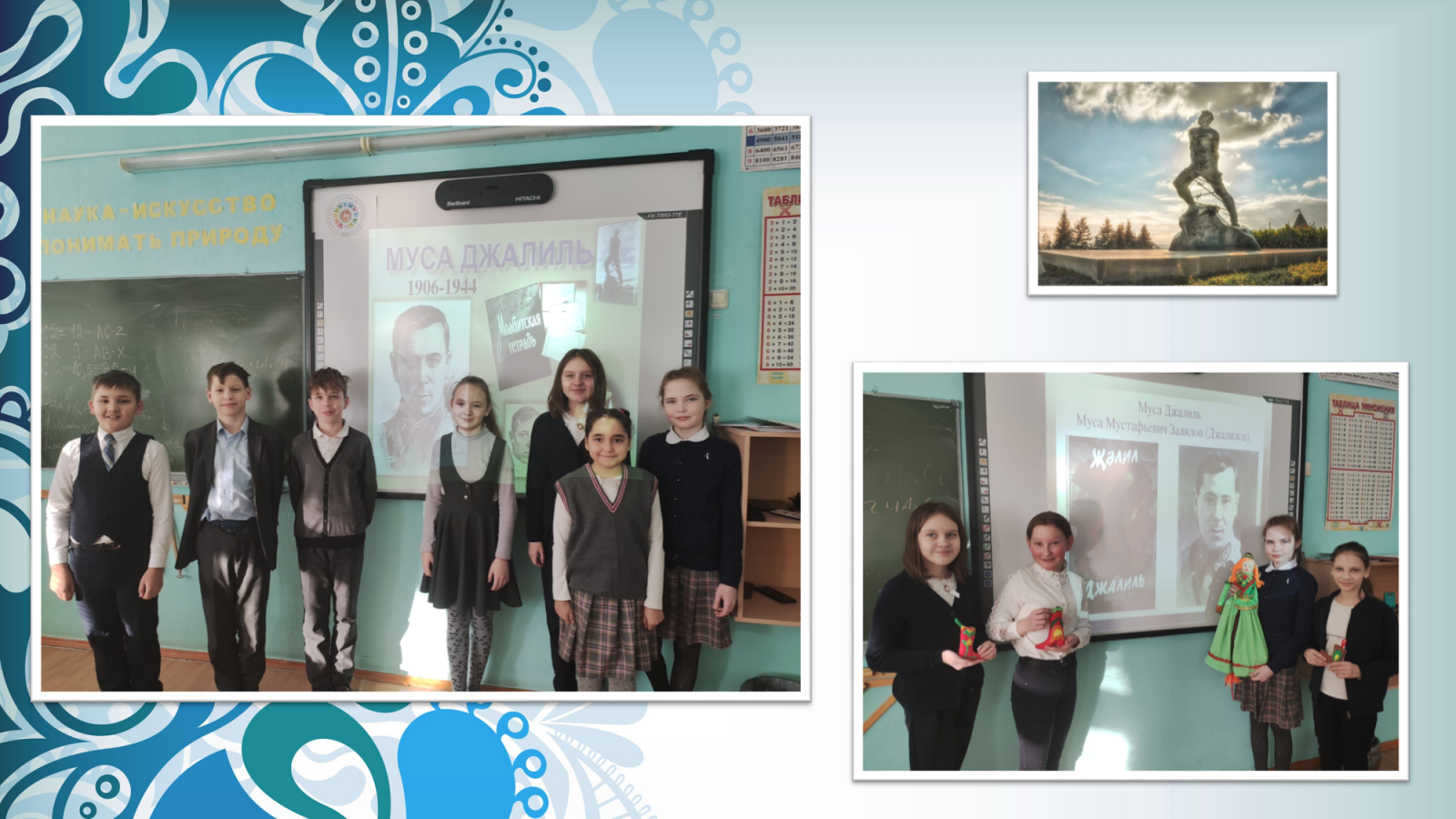 Учителями ВильдановойР. Ш. и Миндрахмановой Г. Р. был проведён урок, посвящённый жизни и творчеству М. Джалиля.
