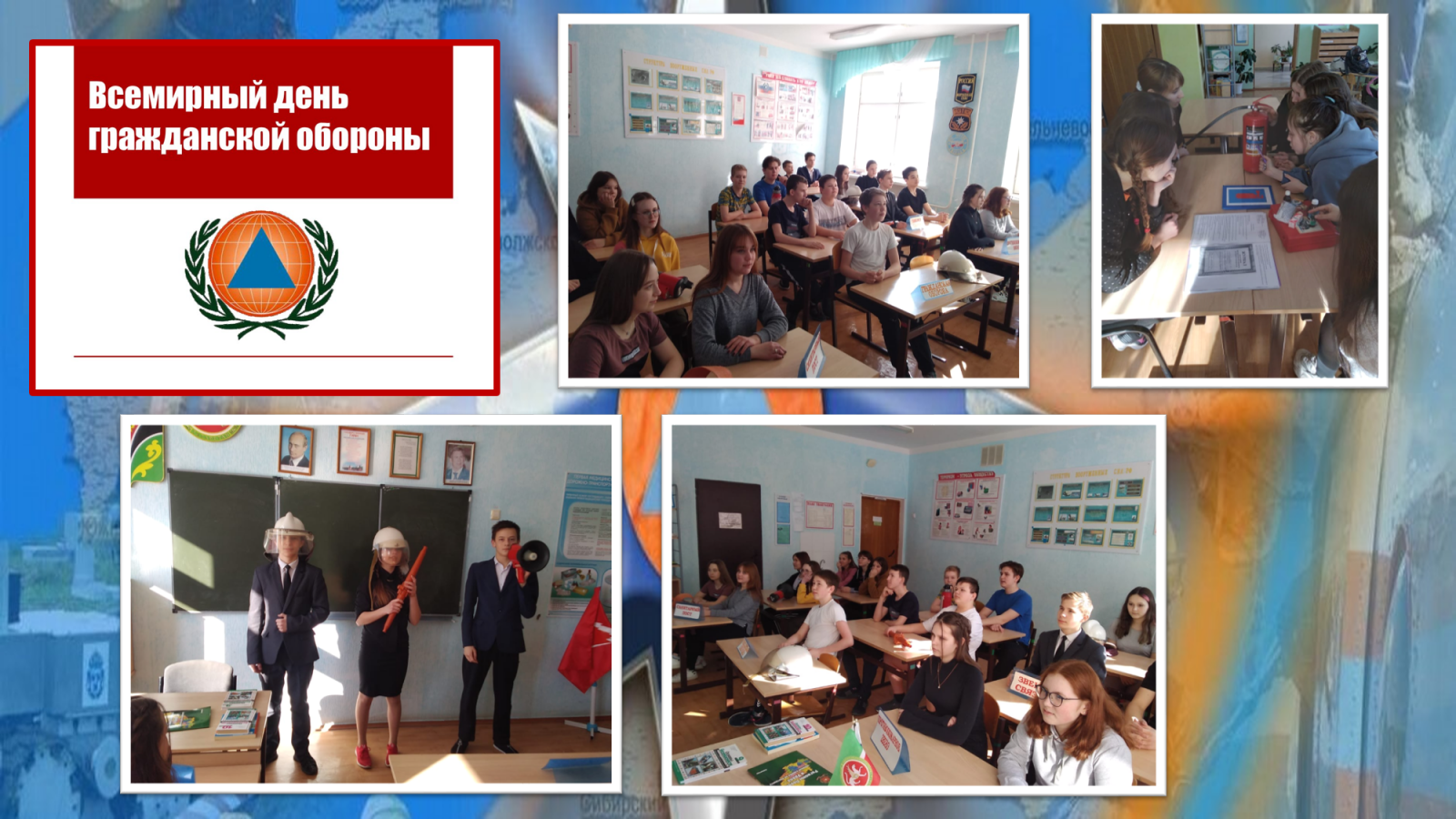 Для учащихся 5- 9 классов были проведены классные часы, по ГО и ЧС. С учениками 8 класса. На уроке ребятам была рассказана история ГО, также были показан фильм об МЧС, также ребята на практике применили инвентарь, используемый спасателями.