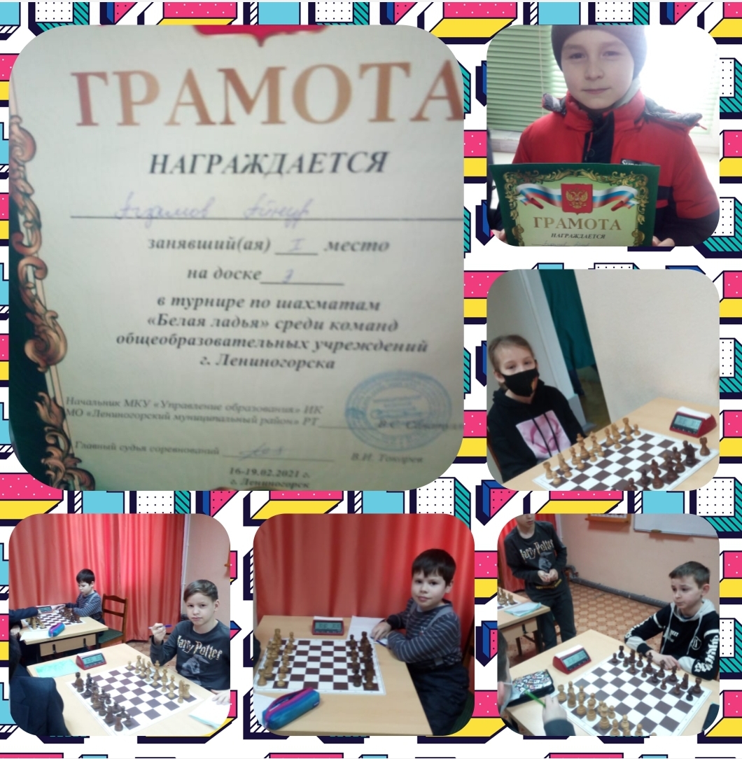 С 16 по 19 февраля 20201 года состоялся турнир по шахматам "Белая ладья" среди команд общеобразовательных учреждений г.Лениногорска" . Команда школы выступила досточно. Наш ученик Агзамов Айнур занял 1 место. Поздравялем!!!