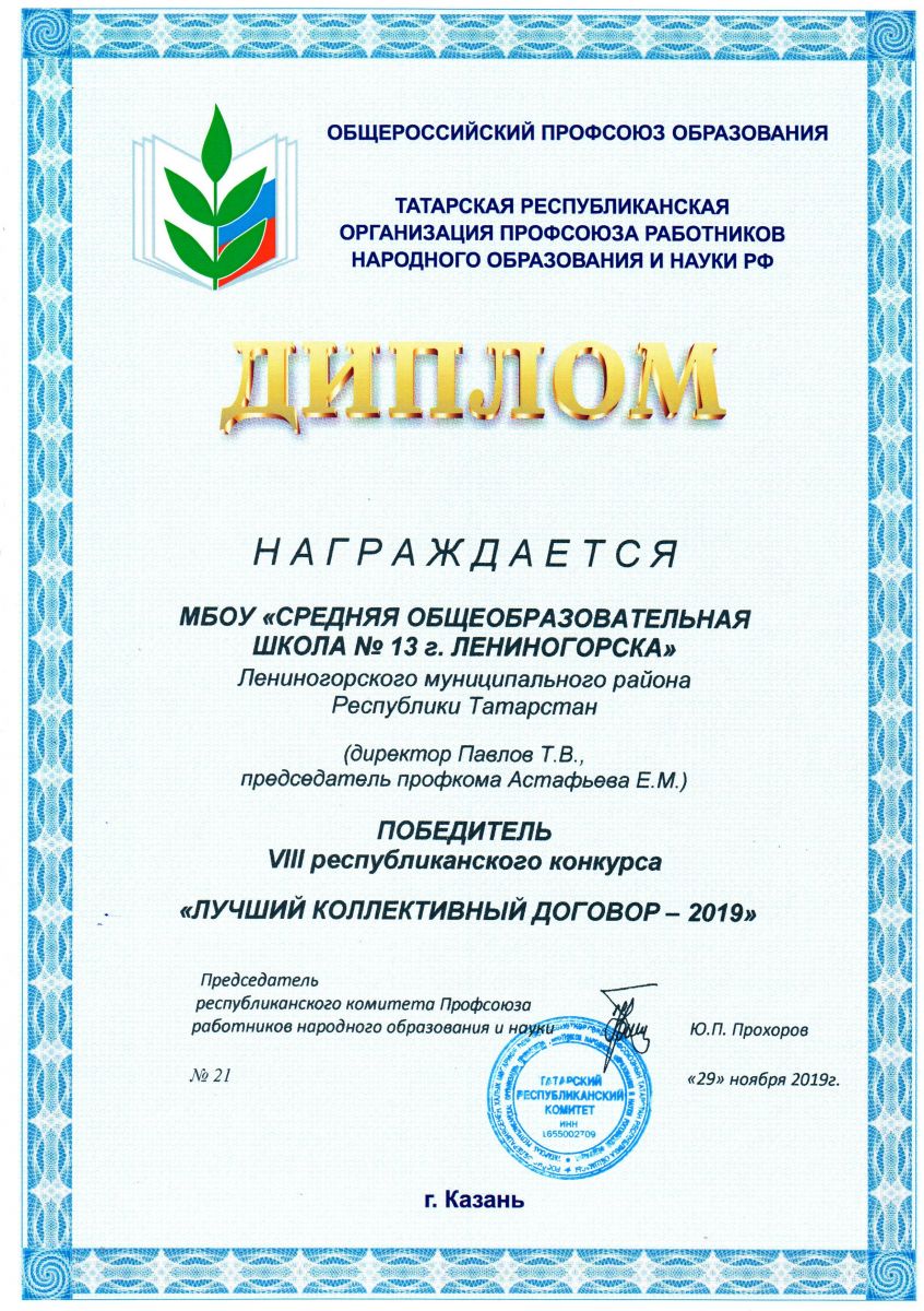 Муниципальное бюджетное общеобразовательное учреждение «Средняя общеобразовательная школа №13 г. Лениногорска» муниципального образования «Лениногорский муниципальный район» Республики Татарстан