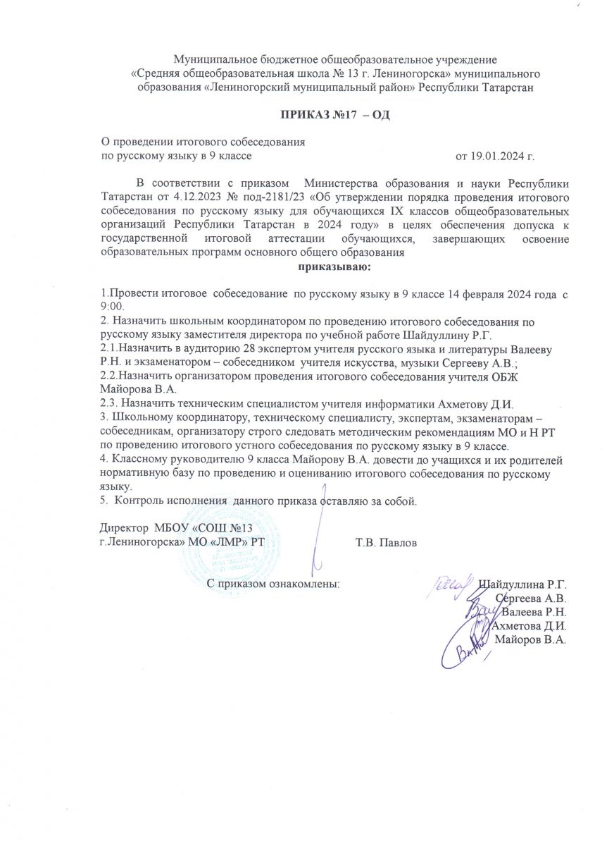 Муниципальное бюджетное общеобразовательное учреждение «Средняя общеобразовательная школа №13 г. Лениногорска» муниципального образования «Лениногорский муниципальный район» Республики Татарстан
