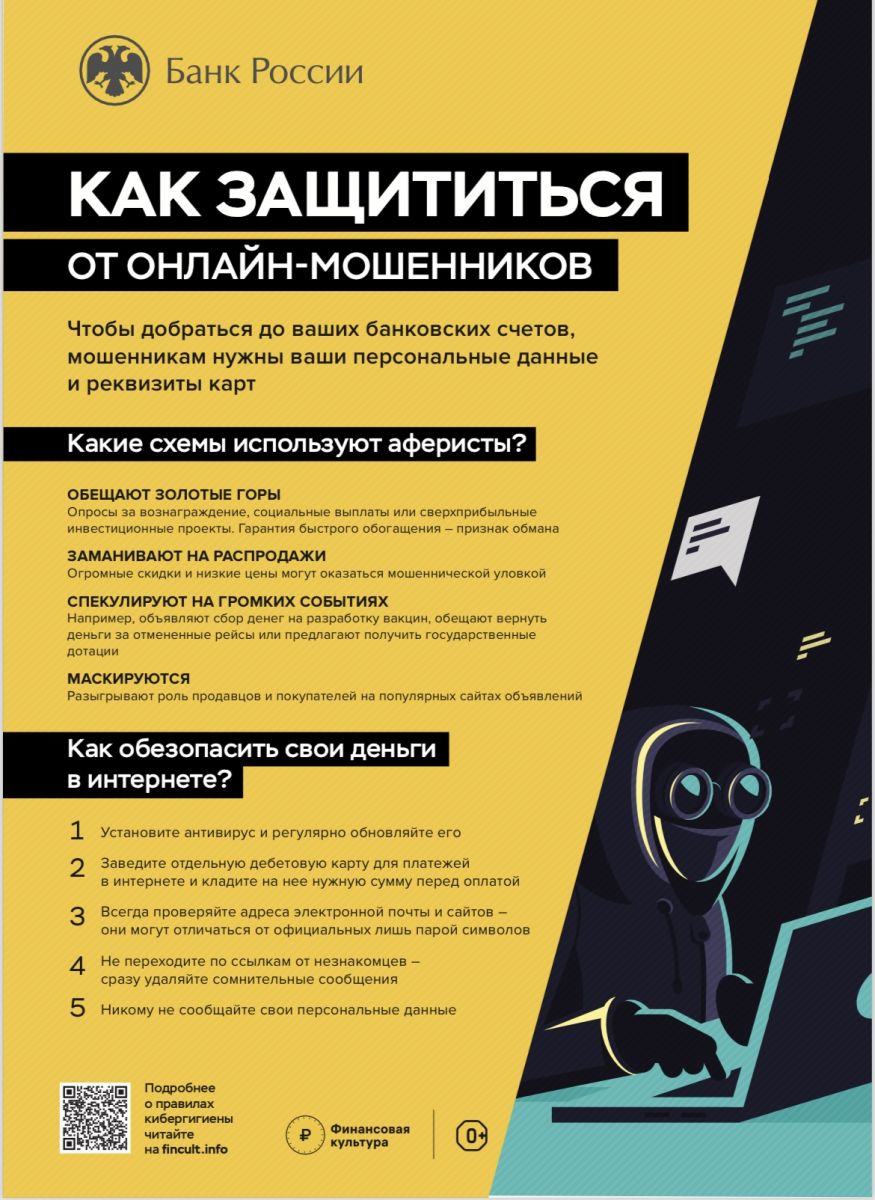 Информационные плакаты по профилактике и защите от онлайн-мошенничеств.