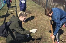 27 апреля на территории школы старшеклассники посадили саженцы березы и рябины.