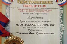 С 28 ноября 2018 по 27 февраля 2019года Управлением информационной политики и массовых мероприятий Федерации развития образования в публичном открытом формате на базе Всероссийской защищённой профессиональной сети педагогического сообщества «Росметодкабинет.РФ» проводился конкурс «Всероссийский публичный смотр среди образовательных организаций "Творчески работающие коллективы школ, гимназий, лицеев России"»