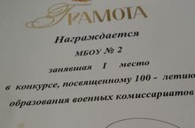 Поздравляем учащихся 10а и 10б классов (классные руководители Кузнецова Н.В., Воробьева Н.А.), занявших 1 место в конкурсе, посвященном 100-летию военных комиссариатов.