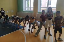 Воспитанники лагеря проходили такие испытание как: сгибание/разгибание рук в упоре лежа, прыжок в длину с места толчком двумя ногами, поднимание туловища из положения лежа, наклон вперёд (на гибкость). Судьи оценивали уровень подготовленности детей и следили за правильностью выполнения испытаний. Ребята активно принимали участие, проходили испытания с большим энтузиазмом и показали хорошие результаты.