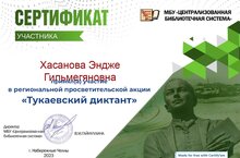 Шушы көннәрдә матур чаралар уздырыла. Шул чараларның берсе –“Тукай диктанты”. Бөек шагыйребезнең тормыш юлын, иҗатын казанышларын чагылдырган биремнәргә җавап язып җибәрергә кирәк иде. Мәктәбебез укытучылары һәм укучылары әлеге “Тукай диктанты”акциясендә актив катнашты. Катнашучыларга сертификатлар җибәрелде.