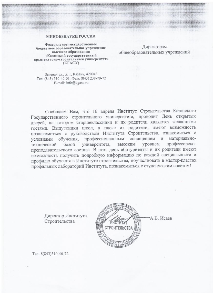День открытых дверей в КГАСУ 10.04.2017