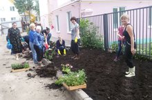 Педагогический и ученический коллектив готовятся к открытию школы, облагораживают территорию, принимают участие в посадке цветов.