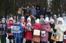 Второй год ребята 2 б класса вместе со своими родителями мастерят для братьев наших меньших кормушки и развешивают их в городском сквере. Пернатые охотно слетаются на предложенное угощение, и наблюдать за синичками, снегирями, воробьями возле кормушки можно часами. Главное не забывать подсыпать что-нибудь вкусненькое в кормушку.