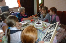 20 октября учащиеся 4 в класса (кл. руководитель Е.В.Есипова) посетили труженицу тыла, бывшую учительницу начальных классов М.С. Федотову. В этот день Мария Семёновна отмечала свой день рождения. Ребята подготовили стихи, показали имениннице сценки. Уже стало доброй традицией навещать «нашу бабулечку» - так назвали ребята Марию Семёновну. Хозяйка не отпустила гостей без угощения, показала свои фотографии. Праздник удался на славу!