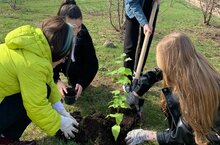На территории школы старшеклассники посадили саженец триплоидной осины, подаренный посланниками ЦУР ПАО «Татнефть».