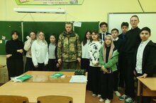 Сегодня учащиеся 8г класса встретились с участником СВО Антиповым Дмитрием Фёдоровичем. Он рассказал как проходит служба, показал ребятам фрагменты кадров из квадрокоптера. Ребята активно задавали вопросы об обстановке на границе.
