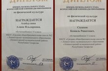 От всей души поздравляем призеров регионального этапа Всероссийской олимпиады школьников по физической культуре Асайдуллину Алину и Салахова Камиля! Также слова благодарности за результативную подготовку учащихся выражаем учителю физической культуры Завитневич Л.В. Олимпиада прошла с 10 по 12 февраля в г.Казани. Желаем дальнейших успехов, высоких результатов и будущих побед!
