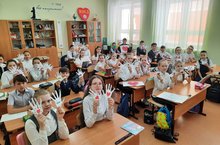 В СОШ №2 ученики начальной школы провели акцию «Ладошки жизни». Дети обвели свои ладошки и на каждом пальчике написали просьбы водителям о соблюдении ПДД.