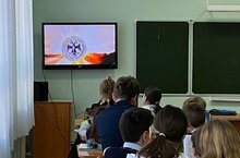 Учащиеся 5-6 классов посмотрели фильм об истории создания герба, его символике, значении и связи с историей России, после отвечали на вопросы по просмотренному материалу. -