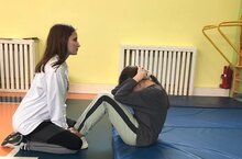 В рамках реализации физкультурного-оздоровительного комплекса «Готов к труду и обороне» в школе проходит сдача нормативов ГТО: наклоны вперед, подъем туловища, потягивание.