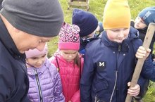 Сегодня, силами первоклассников, на территории школы были посажены рябины и березы.