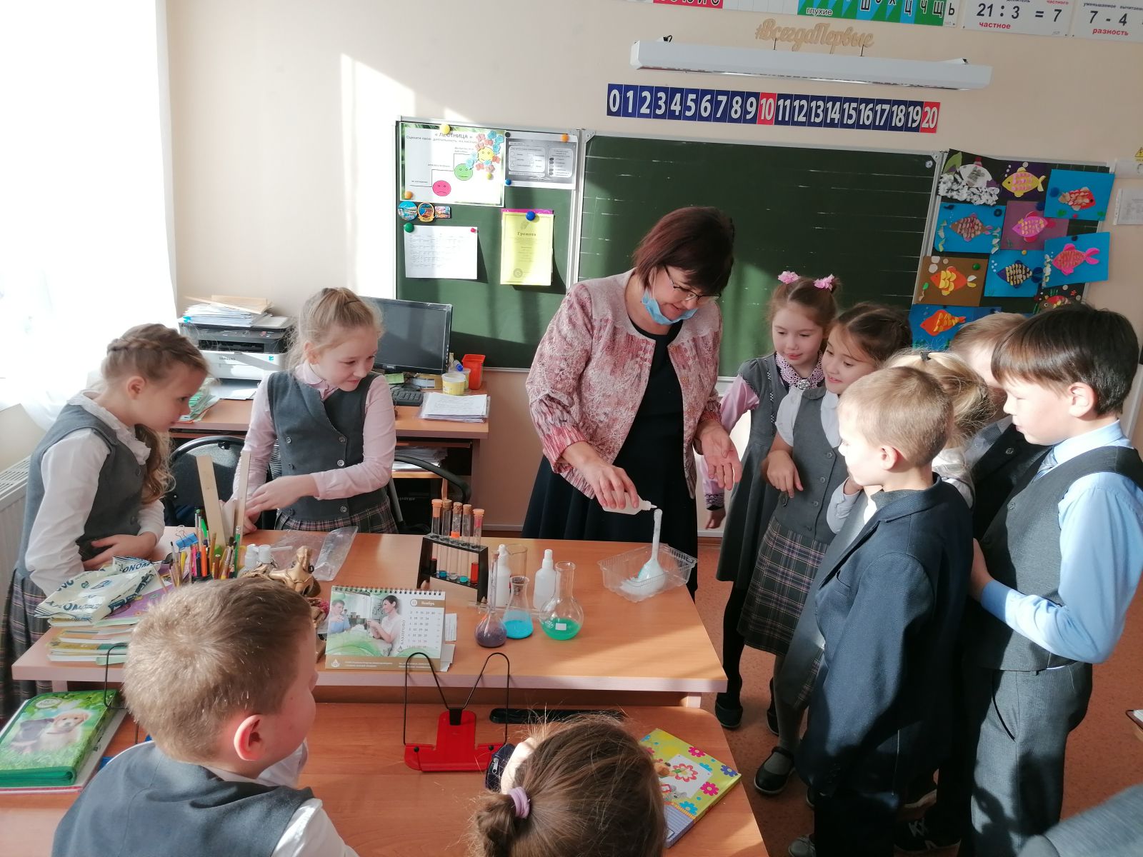 Опубликовано: 31.10.2020Во 2в классе снова интересный гость! Химик-технолог, эколог, преподаватель - это профессии Миляуши Масгутовны - любимой бабушки нашей Рианы. На классном часе происходили настоящие чудеса! Жидкости в колбочках меняли свой цвет на наших глазах, а ещё мы исследовали хвоинки сосны и узнали, какие экологические проблемы нашего города можно по ним определить. Спасибо большое за интересную встречу!